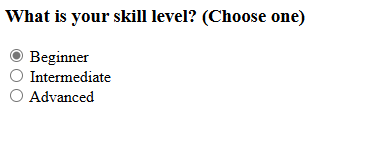 <input type="radio" id="levelAdvanced" name="skill_level" value="advanced">
